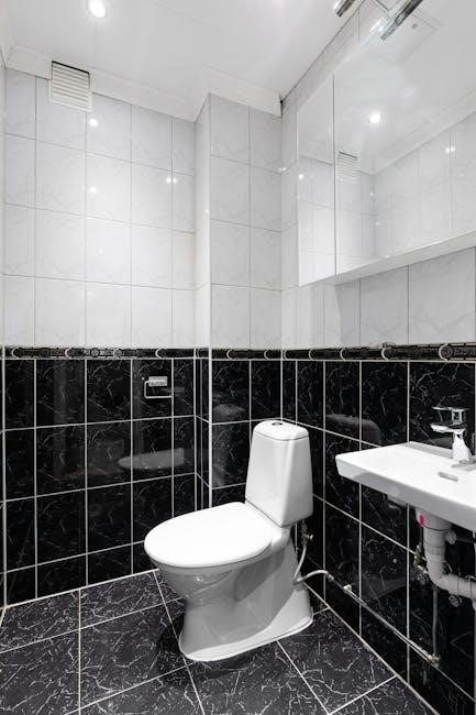However‚ a well-executed PDF drawing is crucial to visualize the limited space and ensure comfortable fixture placement. Careful consideration must be given to door swing and maneuvering room. The plumbing runs are straightforward‚ minimizing pipe length‚ but require precise planning to avoid conflicts. This layout is best suited for smaller bathrooms‚ guest bathrooms‚ or powder rooms where maximizing floor space is paramount.
