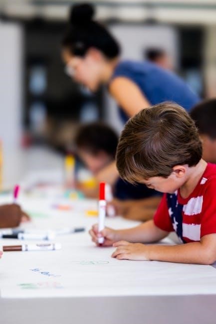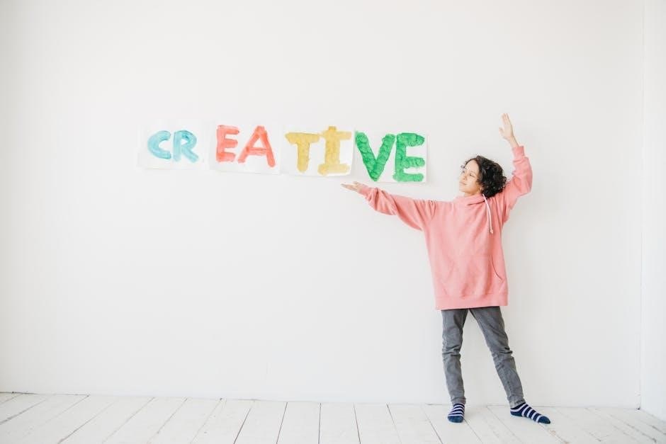The PDF emphasizes open-ended exploration, allowing children to experiment with different materials and express themselves freely. Problem-solving skills are fostered through challenges that encourage children to think critically, collaborate with peers, and find innovative solutions. The Creative Curriculum, as outlined in the PDF, promotes a “process over product” approach.